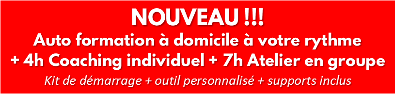 » Formule Distanciel F3 : auto-formation assistée ! Supports, accessoires, 4h de coaching individuel, 2 x 1/2 jour de théorie/pratique en visio inclus par Module.